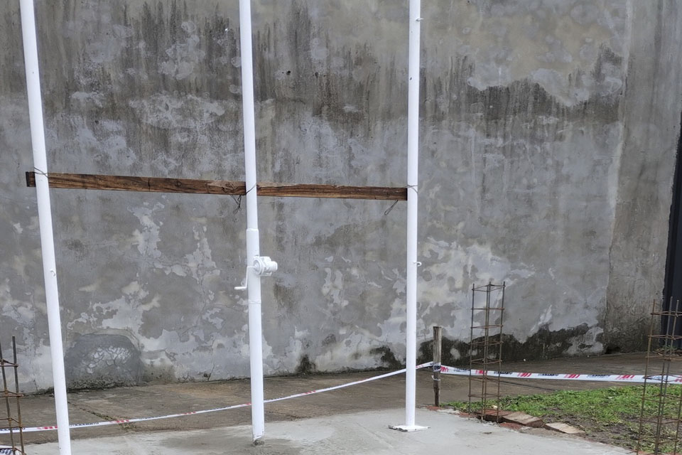 Voluntarios de Santa Elena en la instalación de tres mástiles para la