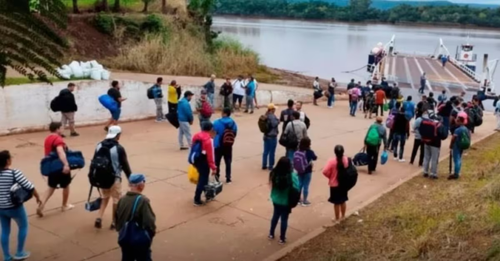 Las imágenes difundidas en redes la semana pasada no tienen precedentes: largas colas de jóvenes, en su mayoría hombres, aguardando para realizar Migraciones y cruzar en balsa por San Javier hacia la vecina San Xavier, o por Alba Posse hacia Porto Mauá.