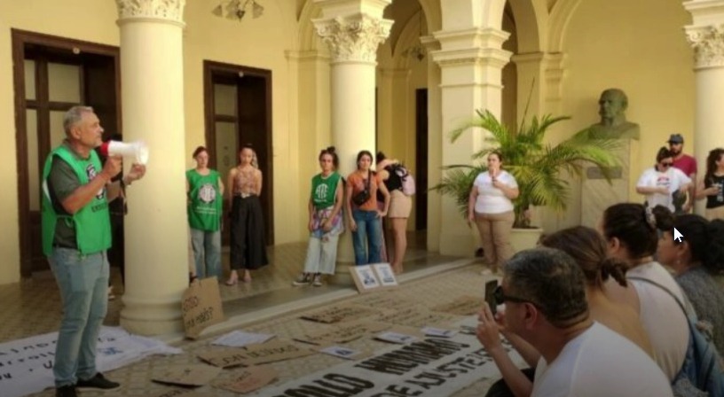 Tras la asamblea, los manifestantes se movilizaron por los pasillos de la Casa de Gobierno con cánticos y carteles, y se dirigieron a los despachos del secretario de Hacienda y Finanzas, Fabián Boleas, y del ministro de Gobierno y Trabajo, Manuel Troncoso. En ese marco, el gremio confirmó que avanzará con una estrategia legal y la presentación de recursos de amparo para exigir la reincorporación de los trabajadores afectados.