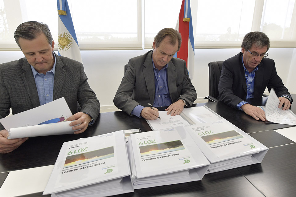 Bordet, acompañado por Bahl, firmó el proyecto de presupuesto provincial 2019.