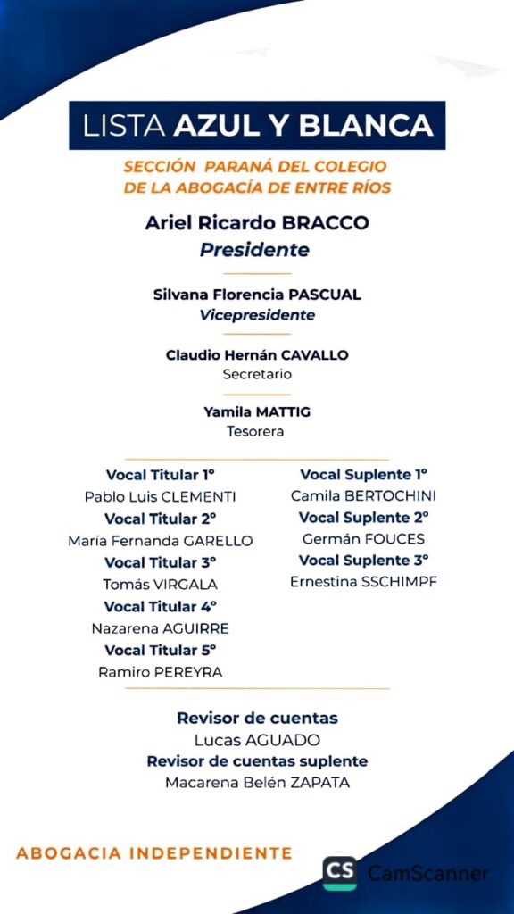 Ariel Bracco, abogado de reconocida trayectoria en derecho laboral, y Silvana Pascual, especialista en derecho civil y comercial, destacaron tras la victoria el “compromiso con la defensa de la colegiación libre e independiente” y la continuidad de una agenda orientada a la capacitación permanente y la modernización institucional.