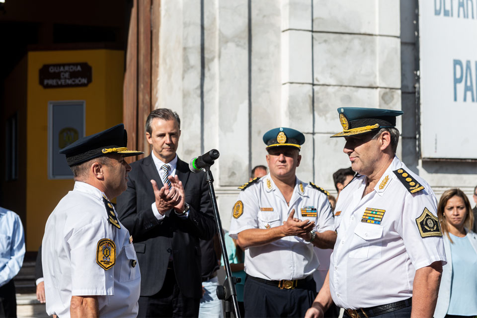 Inspector, Carlos Fernando Echániz, respectivamente. El acto se realizó frente a la sede de la Jefatura en calle Gualeguaychú de la capital