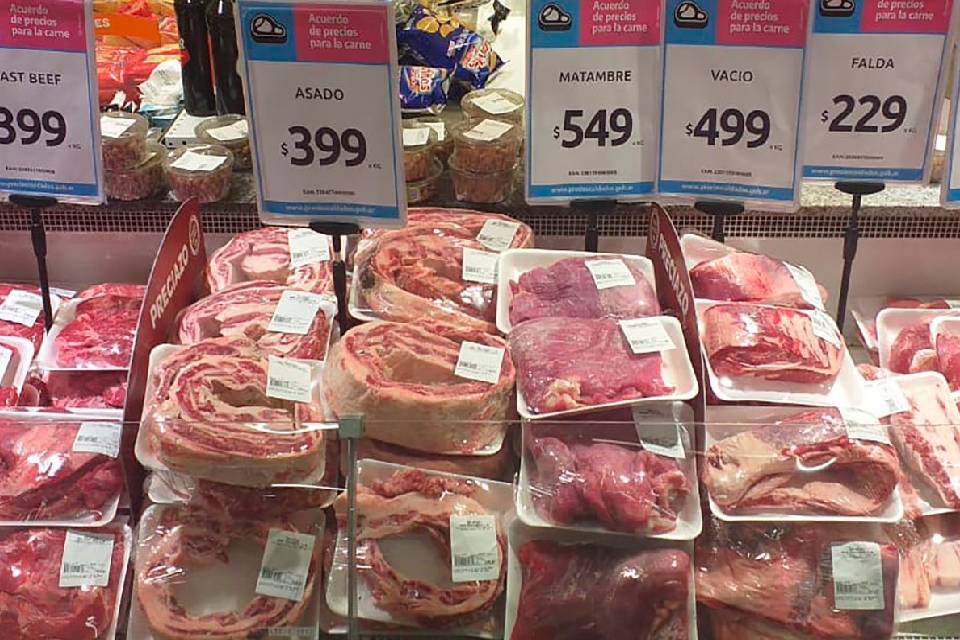 “Las grandes cadenas de supermercados se han comprometido a mantener fijo el precio de todos los cortes de carne en góndola durante el fin de semana largo que comienza mañana”, señalaron tras el acuerdo, que involucra a Coto, Changomás, Cencosud (Jumbo, Disco y Vea) Carrefour, La Anónima y Día%, entre otros