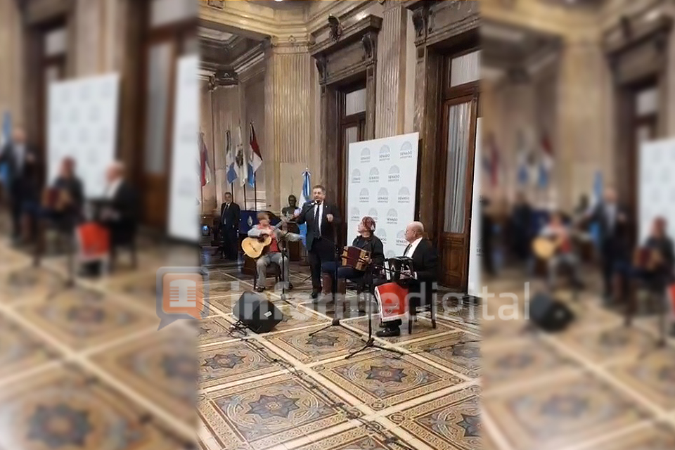 En el marco de una entrega de reconocimiento a cantautores y músicos entrerrianos en el Senado nacional, el senador por Entre Ríos, Alfredo De Angeli (Cambiemos), mostró su destreza como payador y recitó unas coplas camperas.