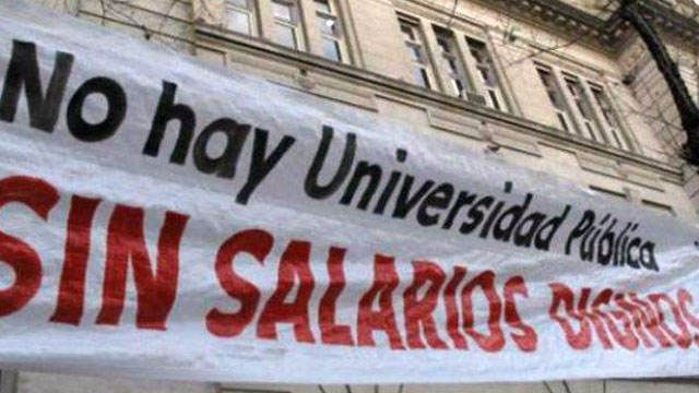 Los docentes universitarios reclaman un incremento salarial del 25% más cláusula gatillo, la implementación de la jerarquización, y la aplicación efectiva del fondo de capacitación y del Fondo Nacional de Incentivo Docente (Fonid), entre otros puntos.