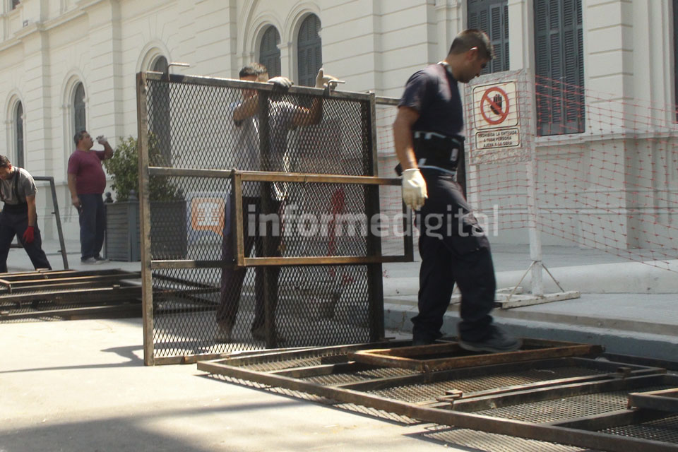 “Frente al riesgo que representa la presencia de andamios, herramientas y elementos de la construcción, las autoridades habían dispuestos el vallado del frente con el objetivo de preservar la seguridad de las personas que se manifestarán esta tarde.
