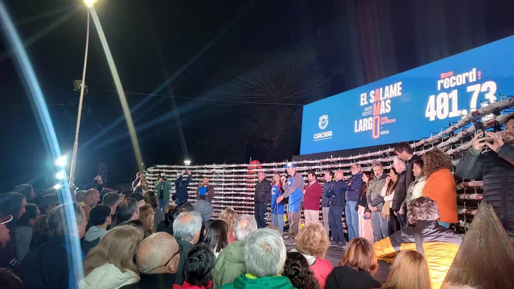 La atención estará puesta en el sábado 8, cuando se presentará un nuevo salame gigante. La meta no es menor: superar los 401,73 metros logrados por Tandil el año pasado y arrebatarle nuevamente el récord a San Andrés de Giles, que recientemente alcanzó 469,18 metros.