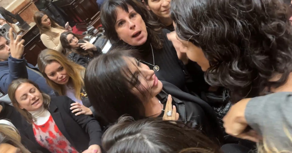 Con el bloqueo de la votación de la comisión $Libra el clima en el recinto se fue tensando. Los cruces que comenzaron por el juicio de YPF y siguieron por el conflicto entre Israel y Palestina fueron subiendo de tono y terminaron de explotar por la detención de las militantes que vandalizaron su casa de José Luis Espert. Camporistas como Paula Penacca y Lorena Pokoik fueron a increpar al candidato bonaerense de La Libertad Avanza. En medio de un escándalo con gritos y hasta empujones, la sesión se levantó por falta de quórum.