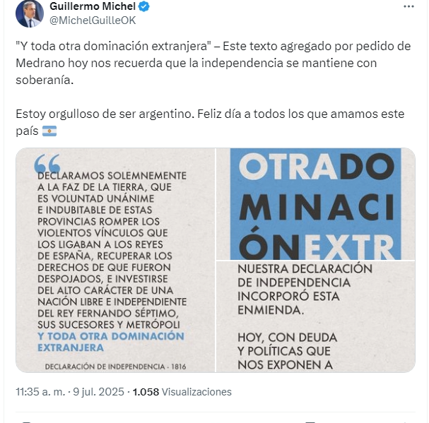Tanto el gobernador como otros actores de la política provincial se pronunciaron en sus redes sociales conmemorando el Día de la Independencia.