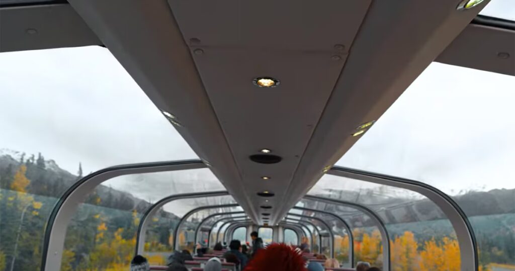 Entre los mayores atractivos del recorrido está la experiencia a bordo del Alaska Railroad, especialmente en los vagones denominados GoldStar Service. Estas secciones cuentan con cúpulas de cristal que ofrecen una visión de 360 grados del paisaje, permitiendo contemplar sin obstáculos ríos congelados, montañas nevadas y glaciares que relucen bajo el sol polar.