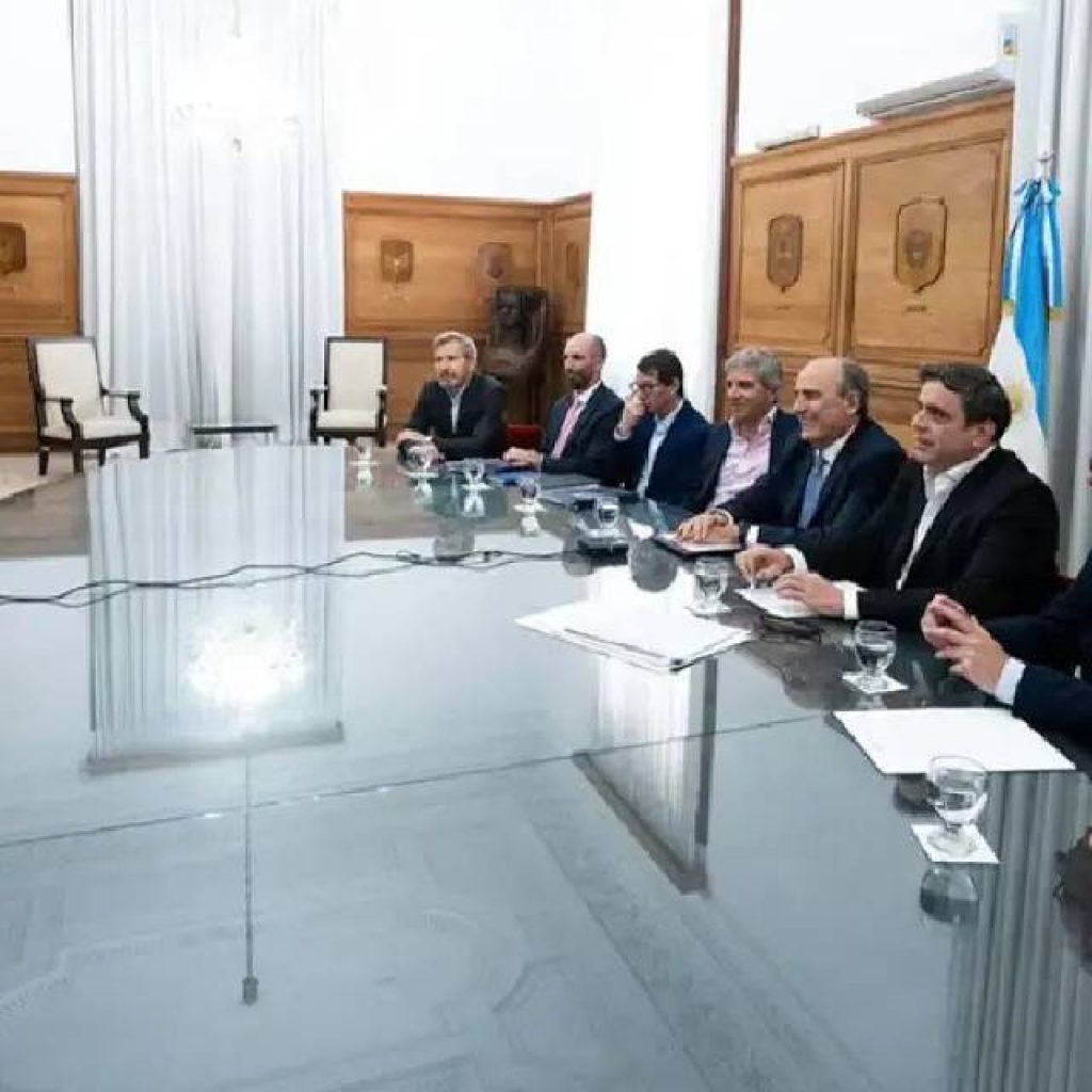 Para calmar las aguas, el jefe de Gabinete, Guillermo Francos, recibió el lunes en su despacho a 20 de los 24 jefes provinciales. A su lado, el encargado de redactar la ley de leyes, Luis Caputo. Aceptaron la invitación presencial Rogelio Frigerio (Entre Ríos) y Hugo Passalacqua (Misiones), mientras que el resto se conectó por teleconferencia.