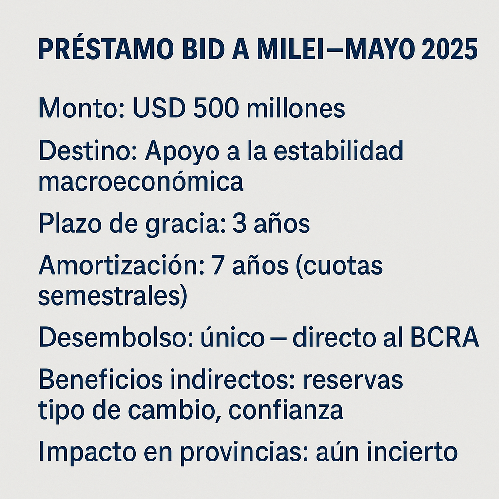 Javier Milei aprobó un nuevo endeudamiento por 500 millones de dólares con el Banco Interamericano de Desarrollo (BID), mediante el Decreto 313/2025, publicado el 8 de mayo. El objetivo declarado: reforzar las reservas del Banco Central, consolidar la estabilidad cambiaria y dar una señal de solidez fiscal ante los mercados.