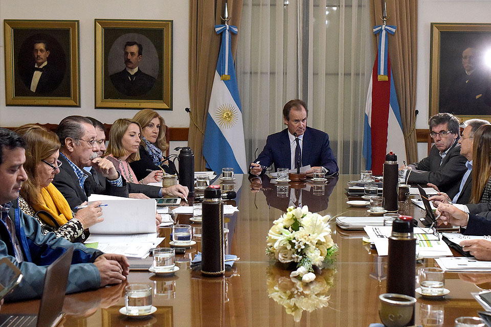 En gobernador de Entre Ríos, Gustavo Bordet, repasó ayer con su Gabinete el plan de obras y aprovechó para firmar los decretos para iniciar la restauración y ampliación de dos escuelas en Gualeguay y Gualeguaychú, y el colector cloacal y lagunas de tratamiento en Feliciano. La inversión supera los 48 millones de pesos.