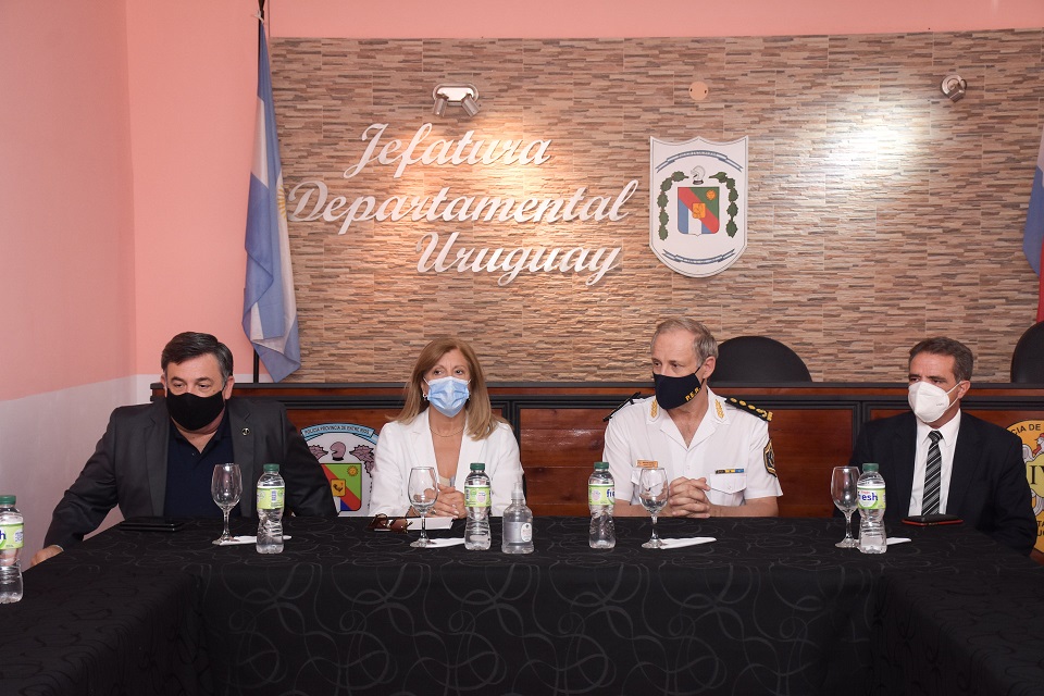 “Hemos estado trabajando la problemática de Seguridad en general y en particular, respecto de los últimos acontecimientos delictivos en Concepción del Uruguay. Trazamos estrategias y nos propusimos mejorar algunas situaciones de prevención”, mencionó la ministra de Gobierno y Justicia, Rosario Romero, quien vino acompañada del Jefe Provincial de la Policía de Entre Ríos, el Comisario General Gustavo Maslein.