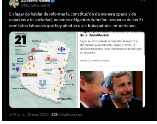 En la misma línea se manifestó el legislador nacional Guillermo Michel, quien a través de sus redes sociales cuestionó que se intente instalar una reforma constitucional “de espaldas a la sociedad”. Además, reclamó que el Ejecutivo provincial debería priorizar la resolución de conflictos laborales que atraviesan distintos sectores de trabajadores en la provincia, antes que abrir un debate institucional de largo alcance.