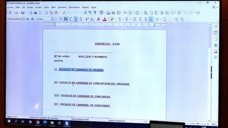 El Superior Tribunal de Justicia (STJ) realizó este miércoles el sorteo público para integrar la nómina de conjueces. El acto tuvo lugar en el Salón de Actos del edificio de Tribunales en Paraná y fue encabezado por el presidente del STJ, vocal Leonardo Portela, y la vicepresidenta, vocal Laura Mariana Soage. También asistieron Pablo Tanger, vicepresidente 2° del Colegio de la Abogacía de Entre Ríos, y Elena Salomón, secretaria de Superintendencia Nº 1 del STJ.
