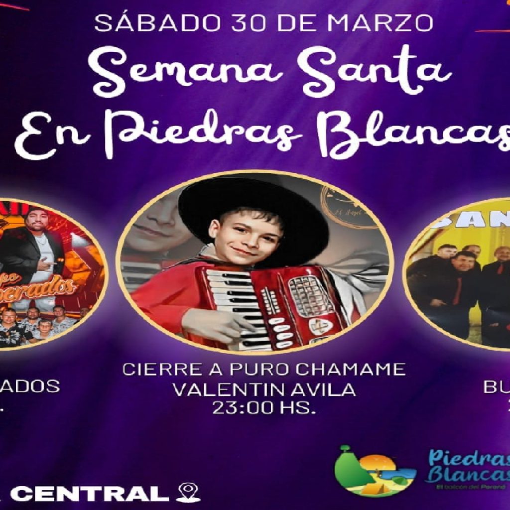 El sábado 30 de marzo la municipalidad de Piedras Blancasinvita a otra jornada a pura música con las presentaciones del GrupoInesperado, la Banda Burbujas y un cierre a puro chamamé con Valentín Ávila.