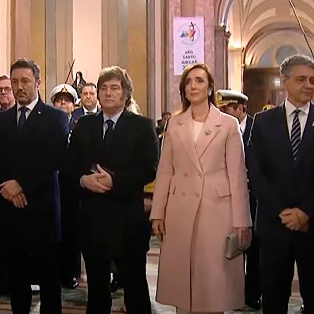 Milei y su equipo salieron de la Casa Rosada a las 8:46 y caminaron la corta distancia por la avenida Rivadavia hasta la Catedral, mientras que Villarruel, vestida con un traje rosa, ingresaba casi al mismo tiempo. En el Tedeum del año pasado, ambos habían llegado juntos, entrelazados del brazo.