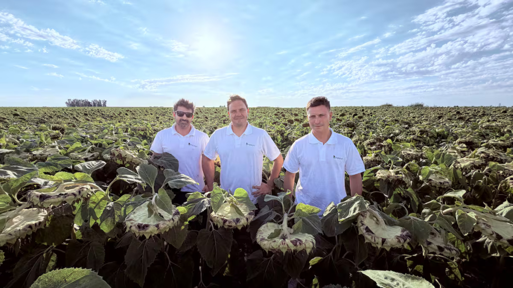 Germán Gabriel Guastella, gerente general de Pelayo Agronomía SA, señala que la empresa siembra desde hace 35 años en campos alquilados y hoy gestiona 73.000 hectáreas distribuidas en cuatro núcleos productivos: nordeste de La Pampa, oeste de Buenos Aires, sur de Córdoba y sur de San Luis. Los principales cultivos son maíz, soja y girasol, con menor superficie de trigo y maní, sembrados y cosechados con contratistas. En el equipo de la firma también están, entre otros, Manuel Pelayo, gerente comercial; Lucas Minetti, responsable del área de sustentabilidad; y Agustín Balduzzi, responsable de campo.